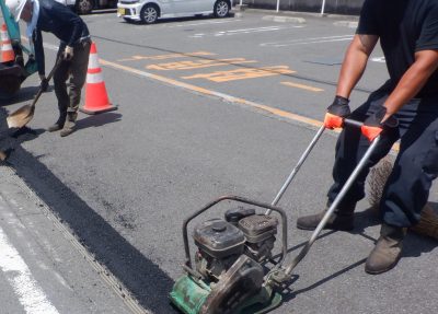 舗装の“きわ”をしっかりおさえることは、アスファルトのめくれや割れを防ぐためにとても重要です。