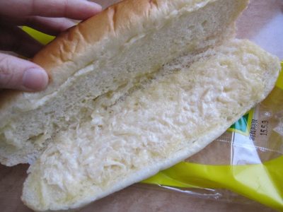 パンを開くと、細かく細切りになったたくあんをマヨネーズで