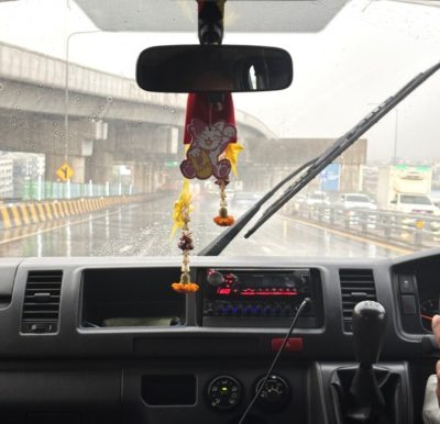 雨のお出かけ・・道路の舗装状況で音も水はけもこんなに違うなんて!!水がスッと逃げる音、好きです。
