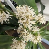 会社の入口に置いてある観葉植物「幸福の木(ドラセナ)」に、なんと今年も花芽がつきました。